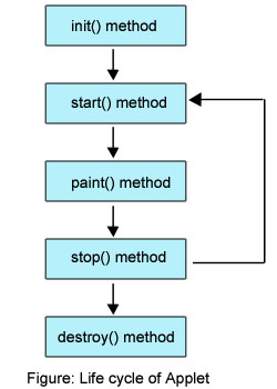 - start − This method is automatically called after the browser calls the init method. It is also called whenever the user returns to the page containing the applet after having gone off to other pages.